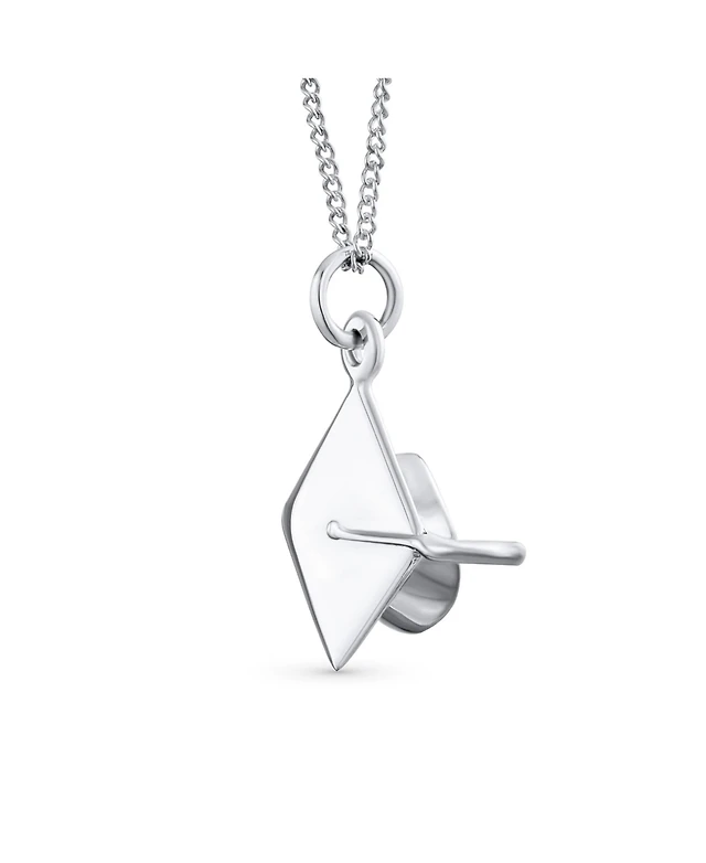 Bling Jewelry Graduate Gift Sterling Silver Pendant Necklace with Graduation Cap Hat Design