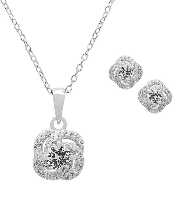 Macy's 2-Pc. Set Cubic Zirconia (2-1/3 ct. t.w.) Round Stud Earrings & Pendant Necklace in Sterling Silver, 16" + 2" extender (Also Available in 14k G