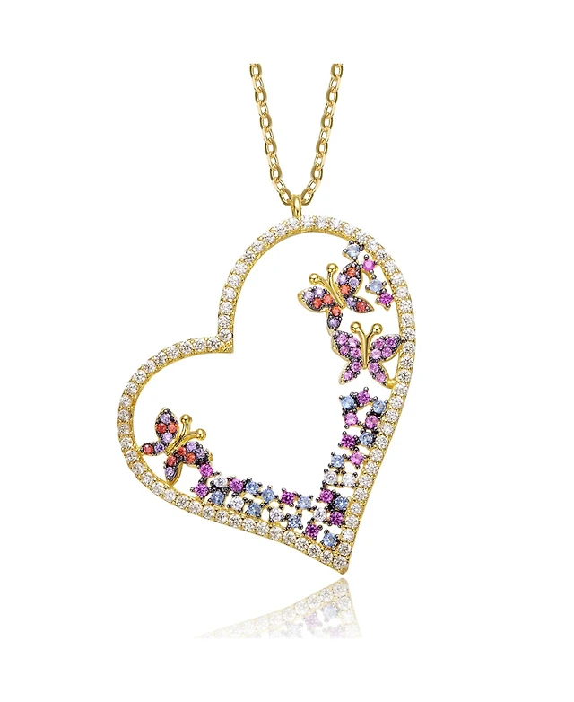 Multi-Gemstone Butterfly 17" Pendant Necklace (7/8 ct. t.w.) in Sterling Silver