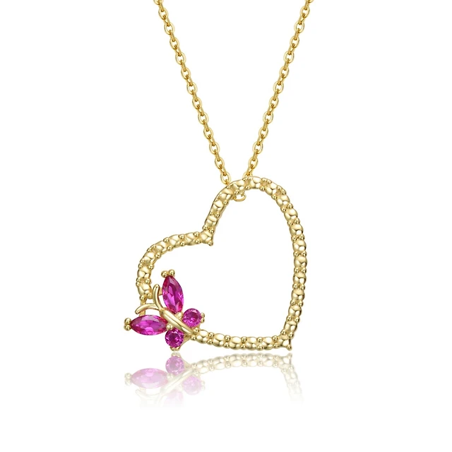 GiGiGirl Sterling Silver with Butterfly Cubic Zirconia on Heart Shaped Pendant Necklace