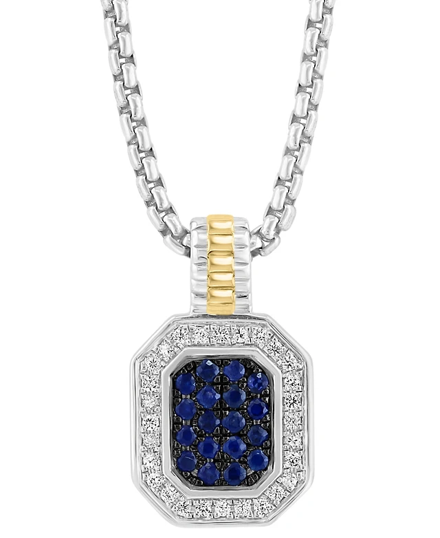 Effy Men's Sapphire (7/8 ct. t.w.) & White Sapphire (1/4 ct. t.w.) 22" Halo Cluster 22" Pendant Necklace in Sterling Silver & 14k Gold-Plated
