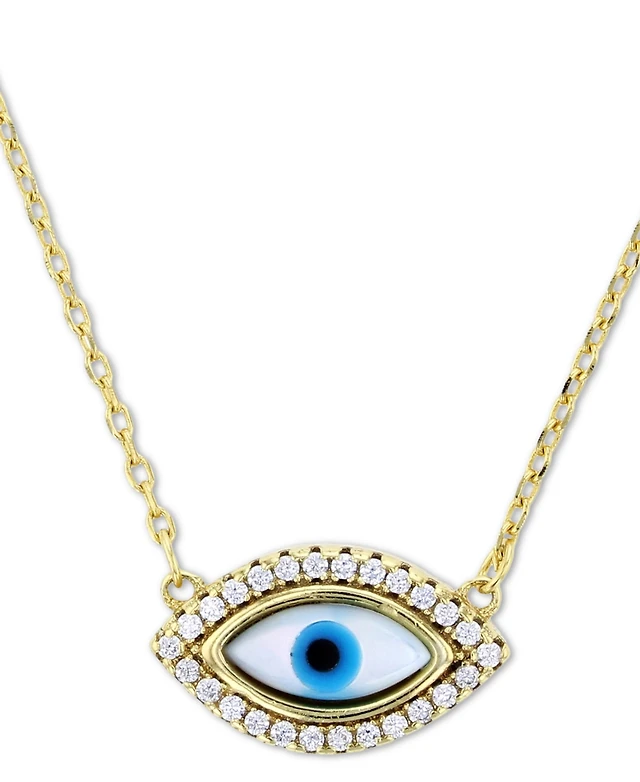 Cubic Zirconia Crescent Moon Disc 18" Pendant Necklace in 14k Gold-Plated Sterling Silver