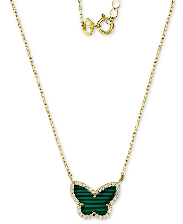 Sterling Silver 14k Gold Plated Green Cubic Zirconia Double Heart Pendant Necklace