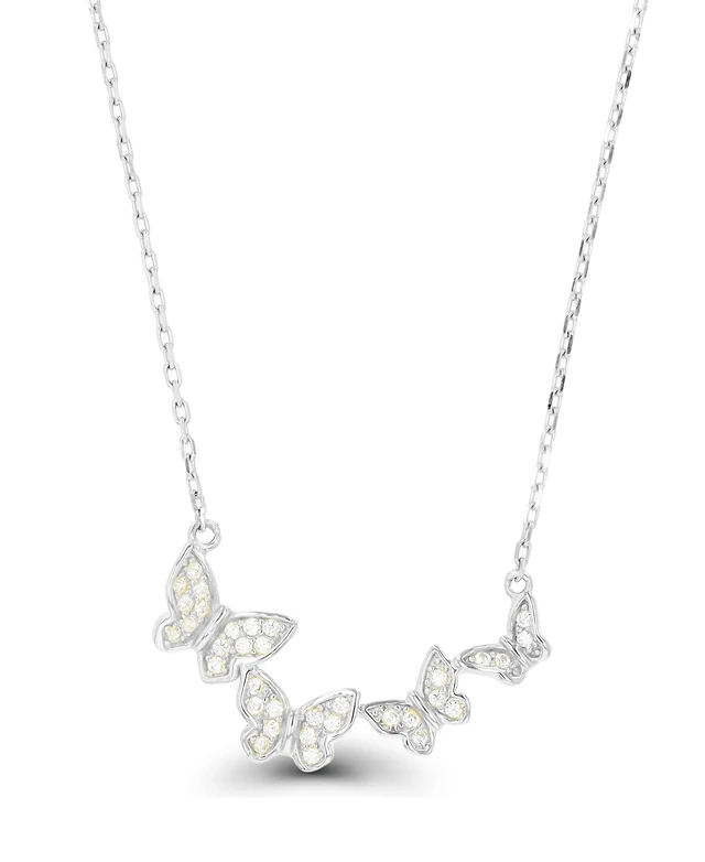 Cubic Zirconia Three Butterfly Lariat Necklace in 14k Gold-Plated Sterling Silver, 16" + 2" extender
