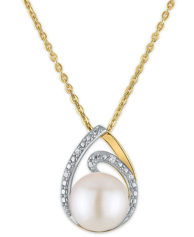 Macy's Cultured Freshwater Pearl (10mm) and Cubic Zirconia Necklace in 14k Gold Over Sterling Silver