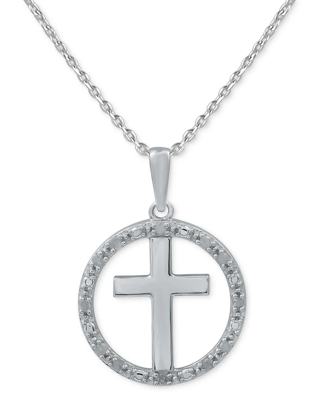 Diamond Loop Cross 18" Pendant Necklace (1/10 ct. t.w.) in Sterling Silver