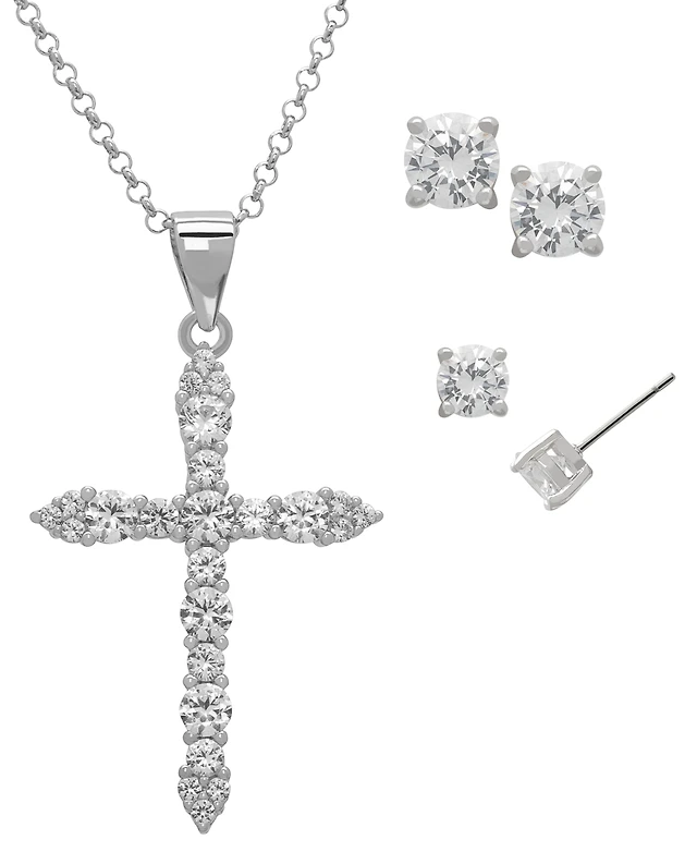 Bling Jewelry Elegant Simulated Pearl Infinity Cross Necklace & Classic 8MM Pearl Stud Earrings Jewelry Set Sterling Silver