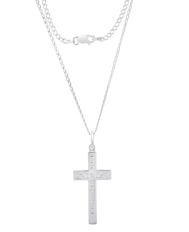 Sterling Silver Cz Sideways Cross Paperclip Necklace