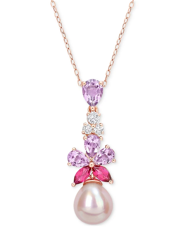 Macy's Cultured Freshwater Pearl (7 & 8-1/2mm) & Amethyst (5/8 ct.t.w.) Cluster 18" Pendant Necklace in 18k Rose Gold Flash-Plated Sterling Silver