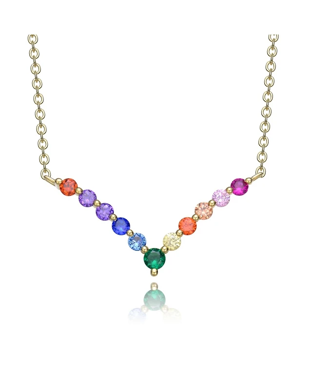 Sterling Silver Rainnbow Cubic Zirconia "V" Pendant Necklace