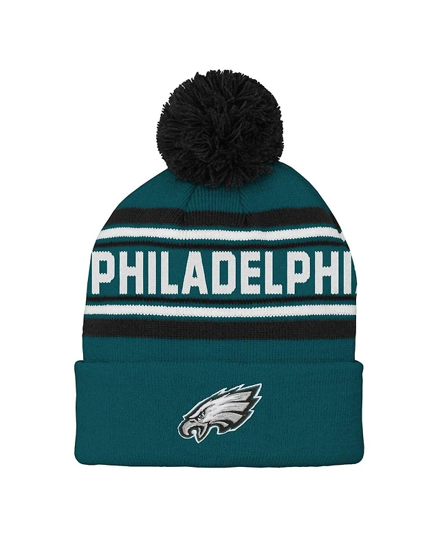 Youth Boys and Girls Midnight Green Philadelphia Eagles Jacquard Cuffed Knit Hat with Pom