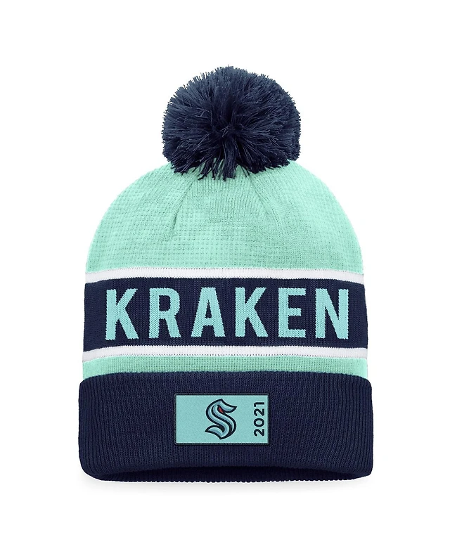 Men's Fanatics Deep Sea Blue, Light Blue Seattle Kraken Authentic Pro Rink Cuffed Knit Hat with Pom
