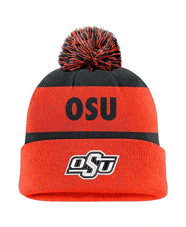 Nike Men's Navy/Orange Oklahoma State Cowboys Peak Stripe Cuffed with Pom Knit Hat