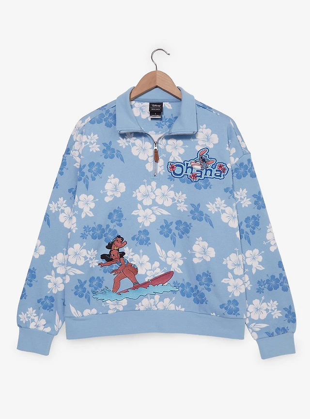 Disney Lilo & Stitch Surfing Women's Plus Quarter Zip Crewneck — BoxLunch Exclusive