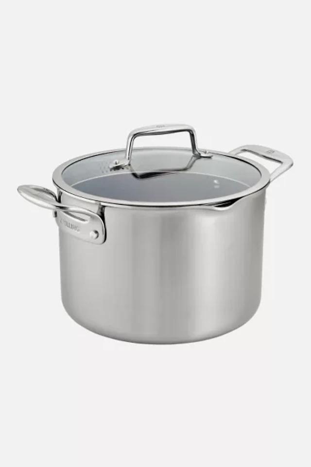 Zwilling Clad Cfx 8-Qt. Stock Pot with Strainer Lid and Pouring Spouts