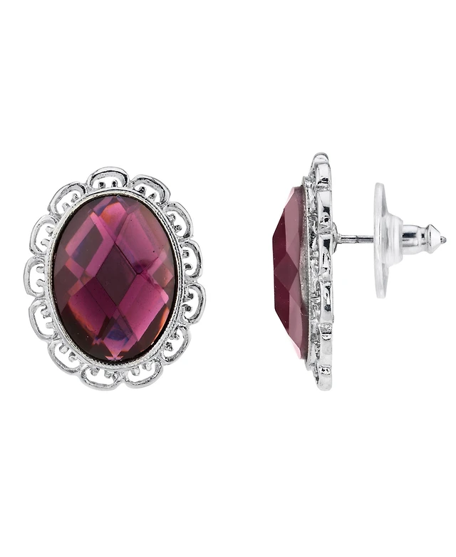 2028 Gold Tone Purple Stone Round Button Clip Earring