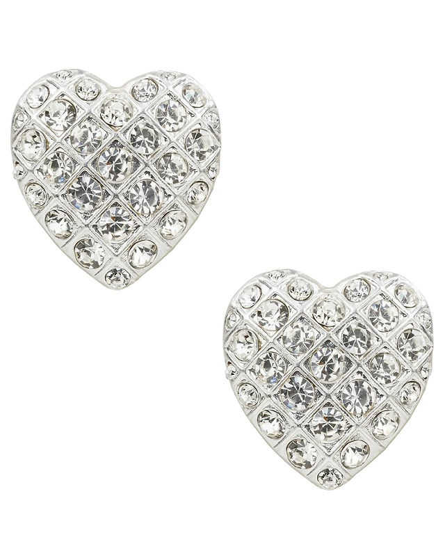 Patricia Nash Glass Stone Worn Silver-Tone Heart Button Clip Earrings