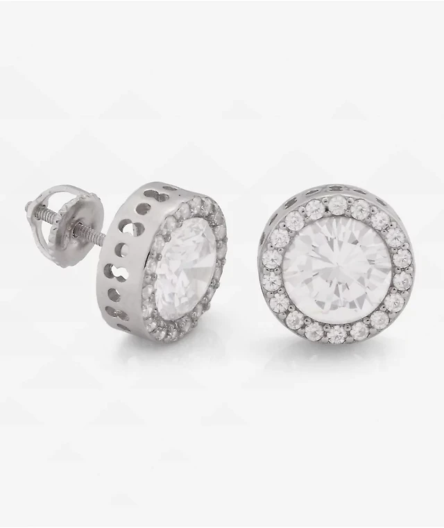 King Ice Button Stud Silver Earrings