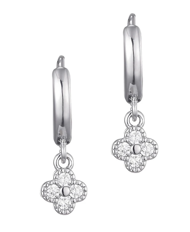 Adornia Silver Cz Halo Drop Huggie Hoop Earrings