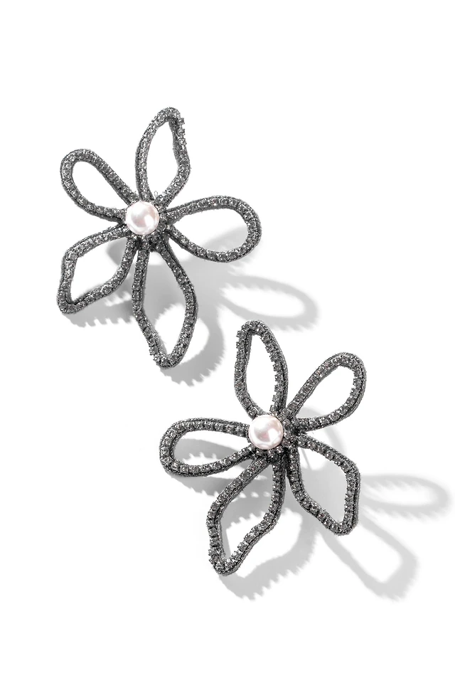 Christian Siriano New York Cubic Zirconia Flower Design Linear Drop Earrings