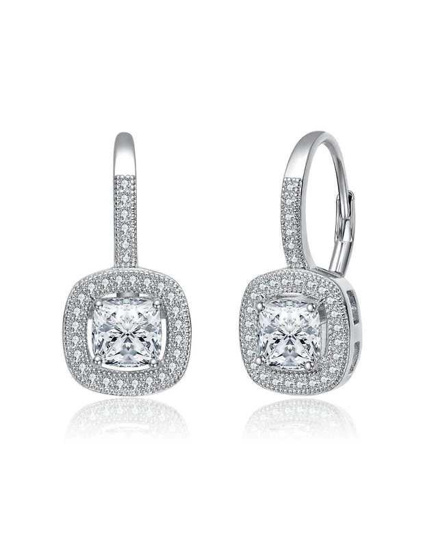 Macy's Fine Silver Plated Cubic Zirconia Dangling Diamond-Shaped Post Earrings