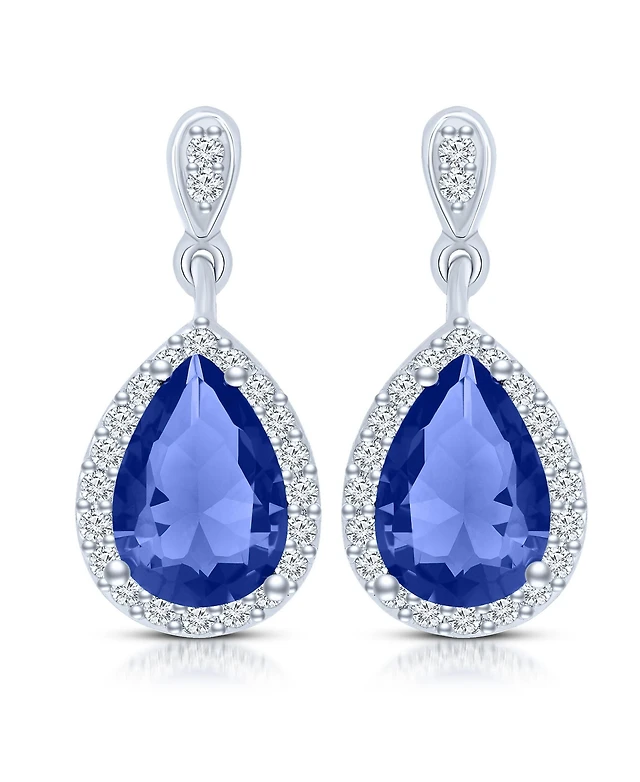 Rachel Glauber White Gold Plating with Clear Cubic Zirconia Pear Drop Earrings