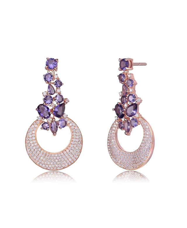 Sterling Silver 18K Rose Gold Plated Pink Cubic Zirconia Drop Earrings