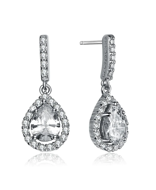 Sterling Silver Clear Cubic Zirconia Pear Lite Dangle Earrings