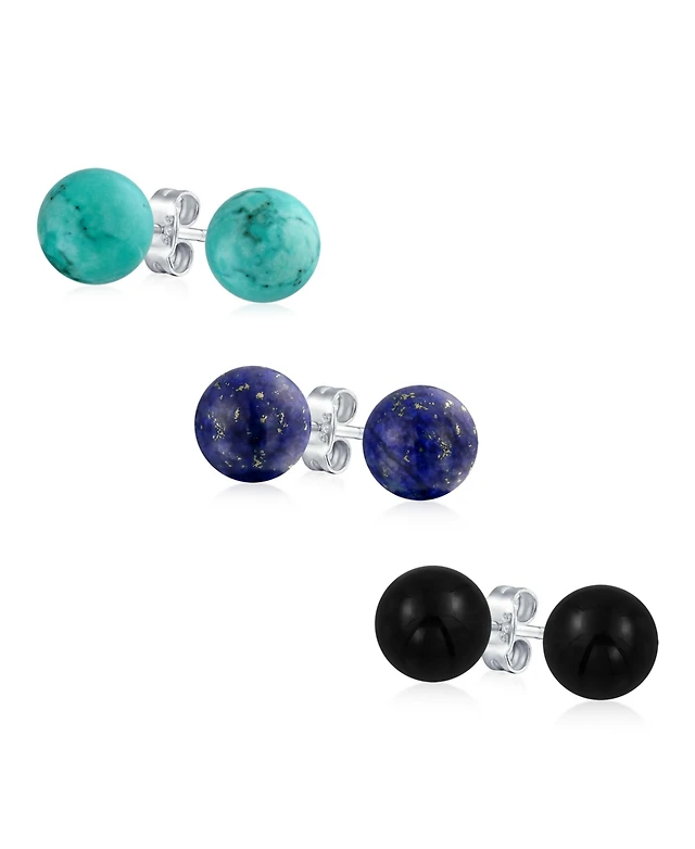 Bling Jewelry Set of 3 10MM Natural Stones Ball Stud Earrings Sterling Silver