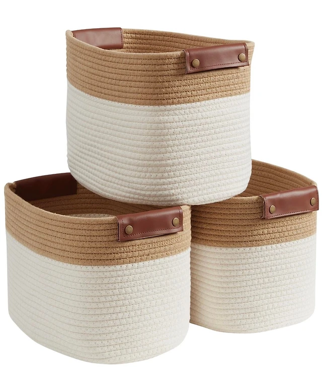 Wickerwise Decorative Round Wicker Woven Rope Storage Blanket Basket with Braided Handles