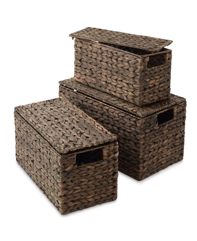 Casafield Set of 3 Water Hyacinth Storage Baskets (Small/Medium/Large), Multipurpose Organizer Totes with Tapered Bottoms and Removable Lids