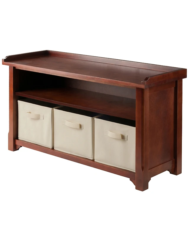 Basicwise Mdf Storage Box Shoe Bench with 2 Shelves, Foldable Baskets and a Gray Cushion, White