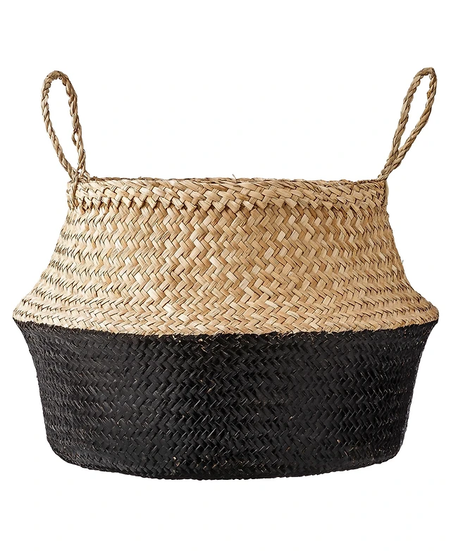 Casafield Seagrass Belly Basket with Handles - Large, Natural Woven Storage Bin Planter for Home Decor, Indoor Plant Pot Cover