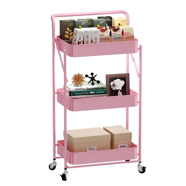 Slickblue Moveable Kitchen Cart with Stainless Steel Table Top, Three Drawers, and Three Baskets in Burlywood for Versatile Storage and Convenience