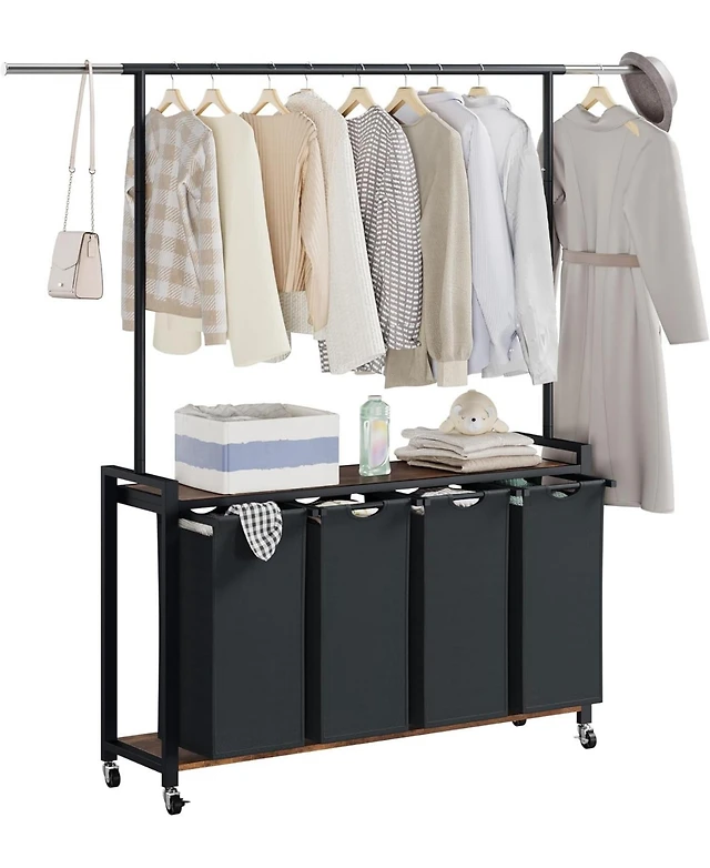 gaomon Rolling Laundry Sorter Hamper 2 Section Basket with Hanging Rack Plus Wheels Organizer for Laundry Room
