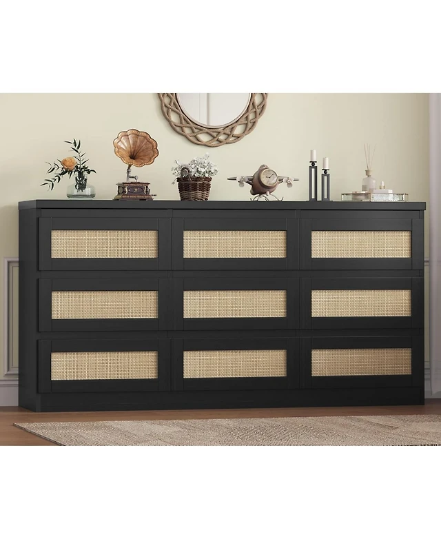 gaomon Rattan Dresser for Bedroom, 6 Drawers Closet, Chests of Drawers, Oak Storage Dressers Cabinet Living Room, Entryway