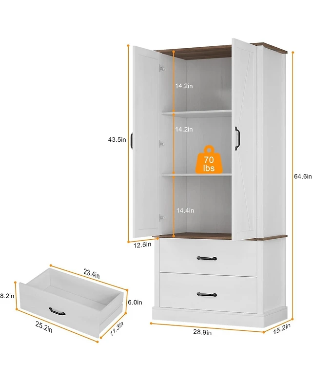 Streamdale Furniture 72 Inch White Pantry Cabinet with 2 Drawers