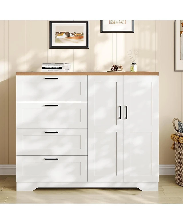 Casainc White Floor Storage Cabinet with Adjustable Shelves, 4 Drawers & Door for Bathroom and Living Room Use