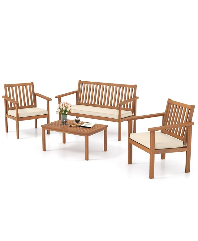 Costway Pcs Outdoor Acacia Wood Sofa Furniture Set Cushioned Chair Coffee Table Garden