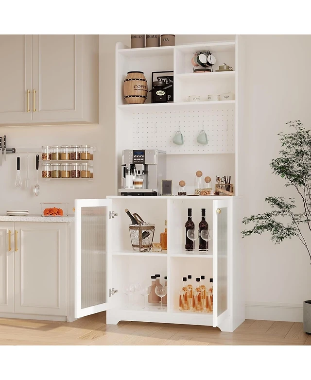 gaomon 70" Farmhouse Coffee Bar Wine Cabinet with Sliding Barn Doors and Storage, Tall Kitchen Hutch