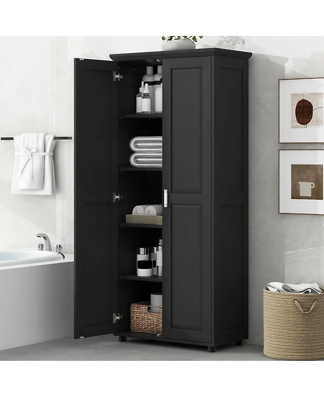 Casainc Tall Storage Cabinet with Adjustable Shelves, Flip-Out Basket and Enclosed Cabinets