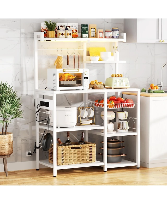 gaomon Tall Kitchen Pantry Cabinet, Kitchen Storage Cabinet with Led Lights and Power Outlets, Food Pantry Cabinet with Microwave Stand, Glass Door, A