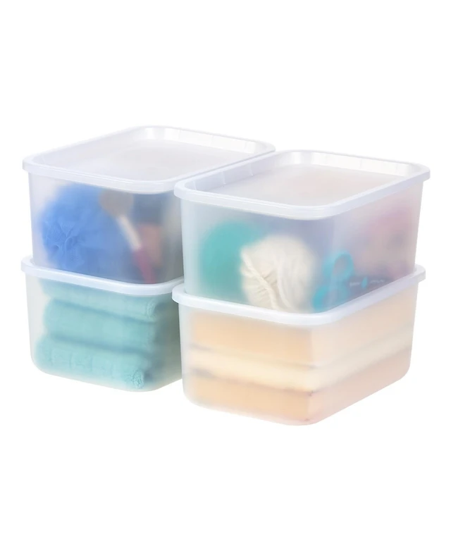 Iris Usa Small Plastic Modular Storage Basket with Lid, 4-Pack, Stackable, for Kitchen Bathroom Bedroom Closet Kid's Room Office, Easy to Clean, Styli