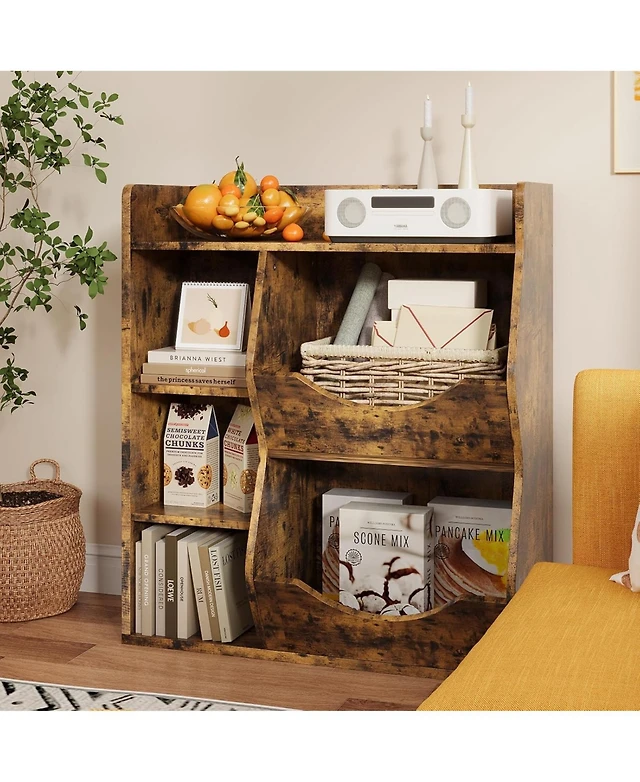 Tribe signs 71 inches Corner Bookcase, 6-Tiers L-Shaped Bookshelf, Industrial Corner Etagere Bookcase, Tall Storage Display Rack, Wooden Large Freesta