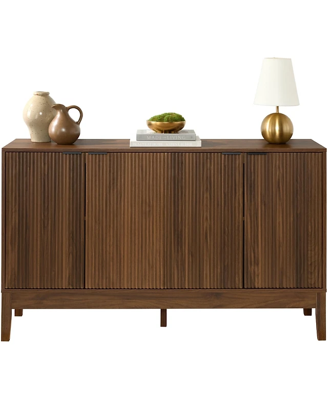 Sugift Modern Tv Media Console with Leather-Wrapped Doors and Cabinet Storage