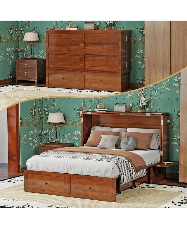 Bedroom Corner Armoire with Top Cabinet, Wardrobe with 2-Drawers and 2-Hold Bar