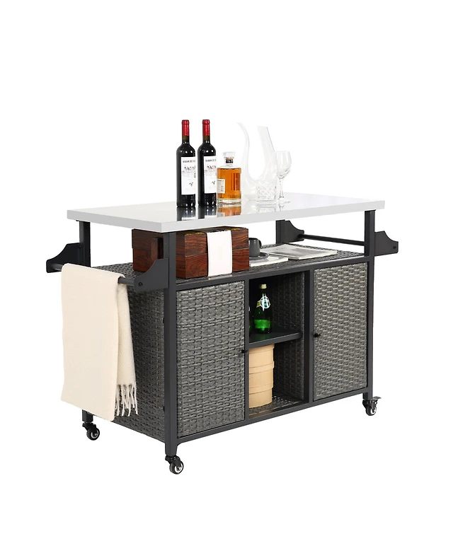 Rolling Bar Cart with Flip-up Table and Hooks for Kitchen