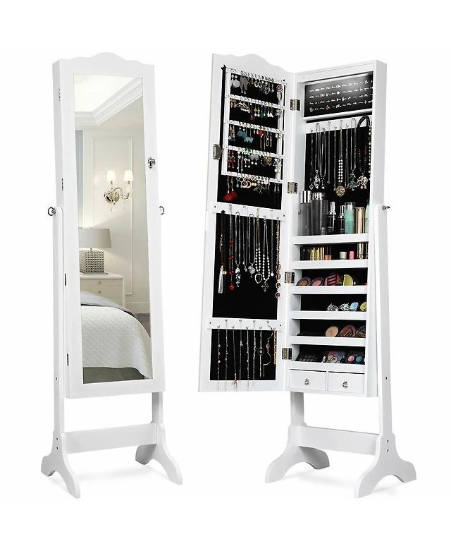 Best Choice Products Hanging Mirror Jewelry Armoire, Door or Wall Mounted Cabinet w/ Led Lights, Lock