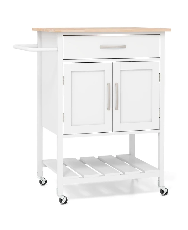 Rolling Kitchen Island Cart with Drawer and Side Hooks