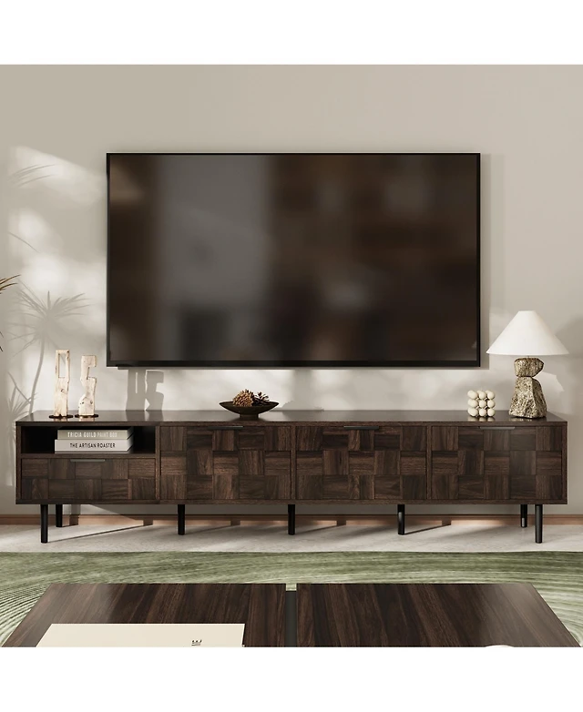 gaomon Farmhouse Tv Stand for Tv Up to 80 Inches, Long Entertainment Center with 4 Storage Drawers & 3 Open Shelf